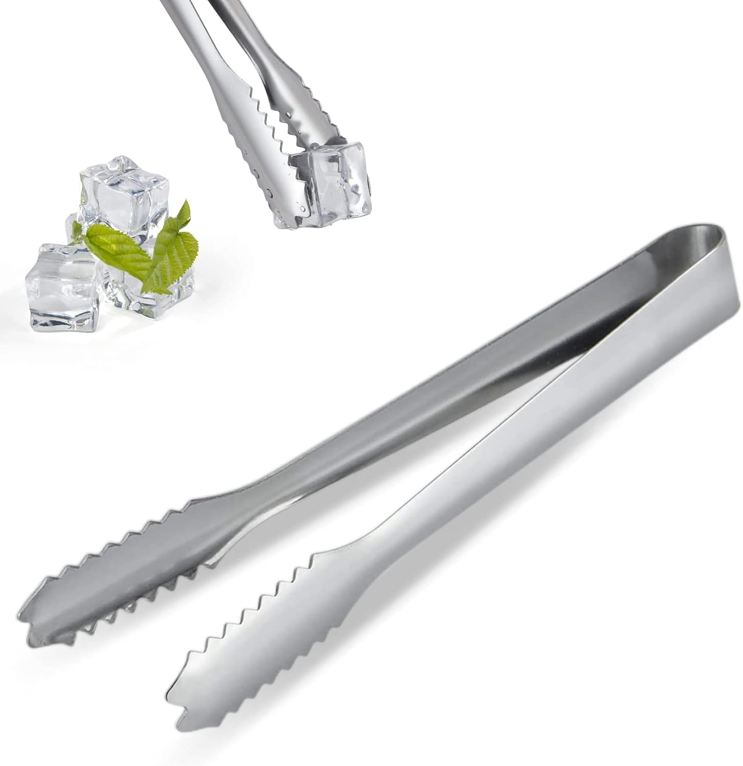 Agarre Dentado Eficaz: Las puntas cuentan con bordes dentados o festoneados diseñados para sujetar firmemente incluso los cubitos de hielo más resbaladizos, evitando caídas y derrames accidentales.
