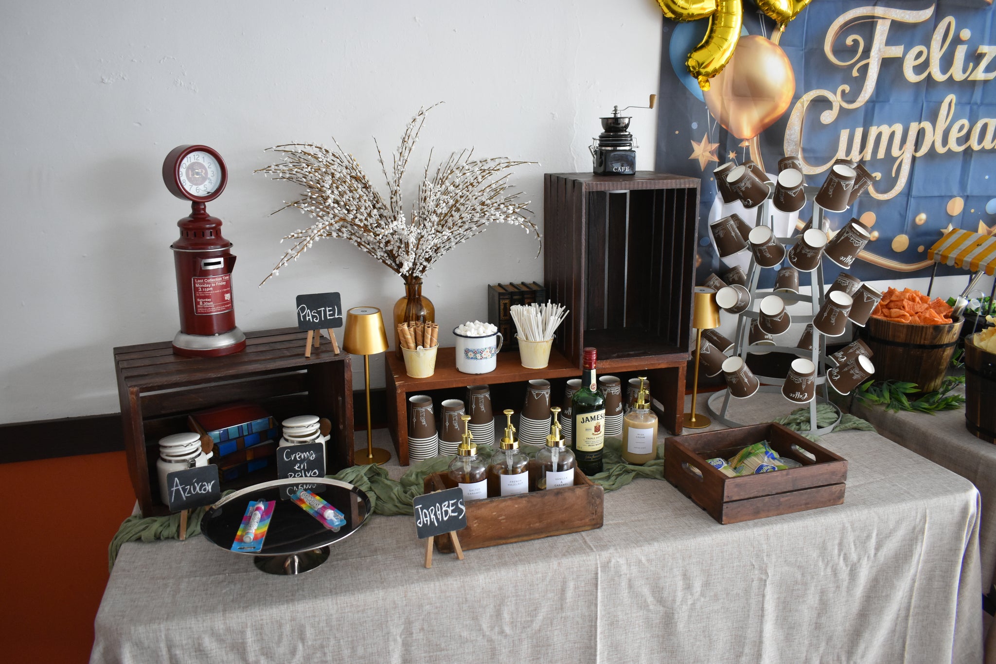 Alquila con nosotros el equipo necesario para establecer una elegante estación de servicio donde tus invitados disfrutarán de café, chocolate caliente, té, bocadillos, pan dulce o galletas.